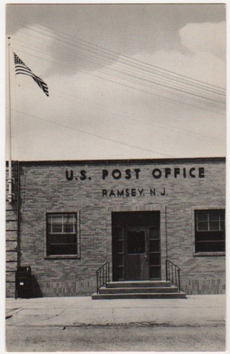 This post card shows one of the previous locations of the Ramsey Post Office, now you may recognize it as the same building Morano’s Italian Gourmet Market is in.