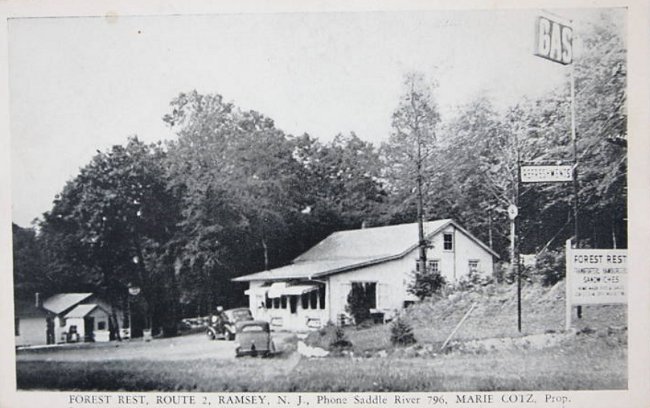 Depicted is a 1940 post card of a gas station and cabins along Route 2 called Forest Rest. Route 2 was designated from a part of Route 17N back in 1927, the portion of the road running from North Arlington to the New York border. The road name was changed to Route 17 in 1942 based on a defense requirement to match the name of the New York portion of Route 17.