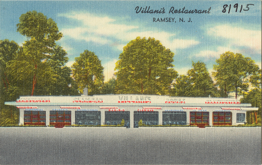 The view of Villani’s Restaurant in 1950 from Route 17, where patrons could enjoy “the finest food and and fountain service” either indoors or outdoors. The restaurant stood where the Howard Johnson’s used to be on Route 17, which has since been integrated into the Interstate Shopping Center.